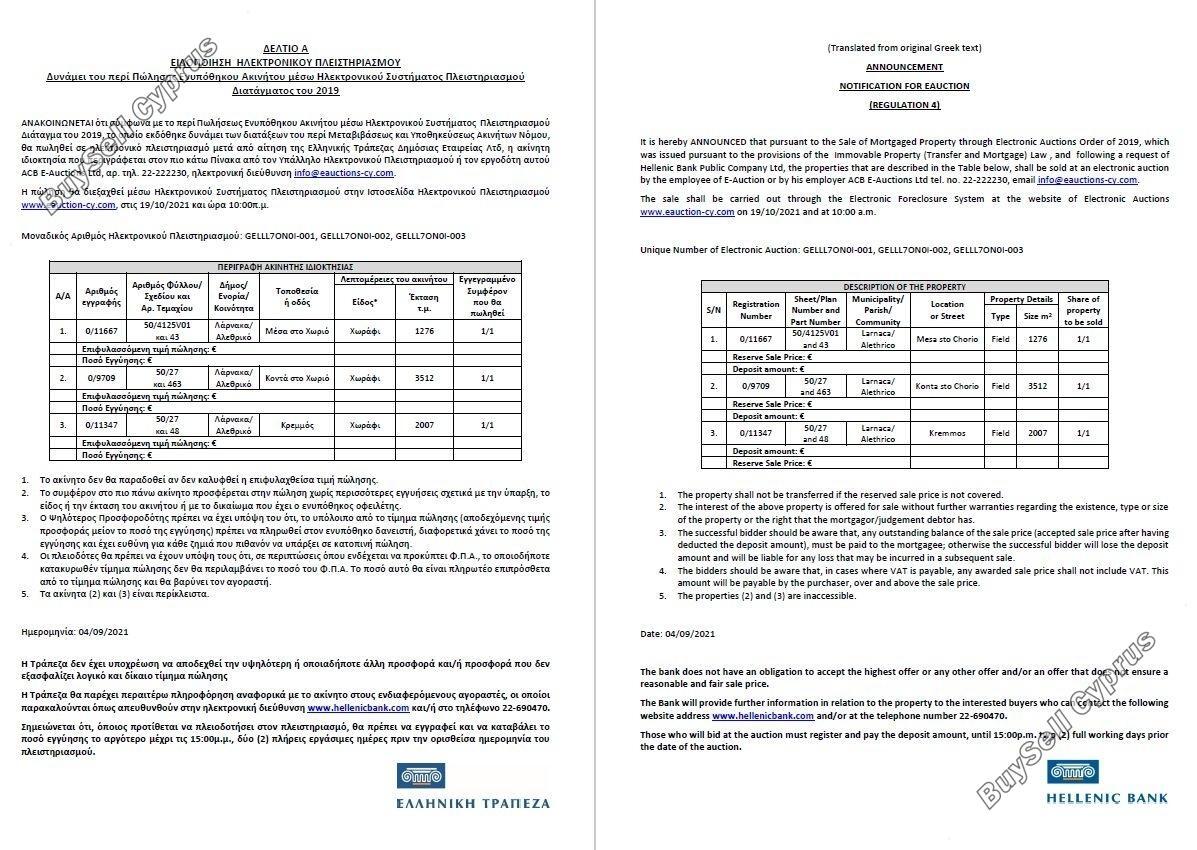 Aukcja zostanie przeprowadzona za pośrednictwem Elektronicznego Systemu Wykluczenia na stronie internetowej Aukcji Elektronicznych www.eauction-cy.com (https://www.eauction-cy.com/Auction/Details/6804) w dniu 19.10.2021 r. o godz. 10:00 Unikalny numer aukcji elektronicznej: GELLL7ON0I-003. Nieruchomość objęta jest 100% udziałem. Aby uzyskać więcej informacji prosimy o kontakt (22-690470). Należy pamiętać, że podana powyżej cena jest ceną zastrzeżoną aukcji. Osoby, które będą licytować na aukcji, muszą się zarejestrować i wpłacić kaucję do godziny 15:00. dwa (2) pełne dni robocze przed datą aukcji.