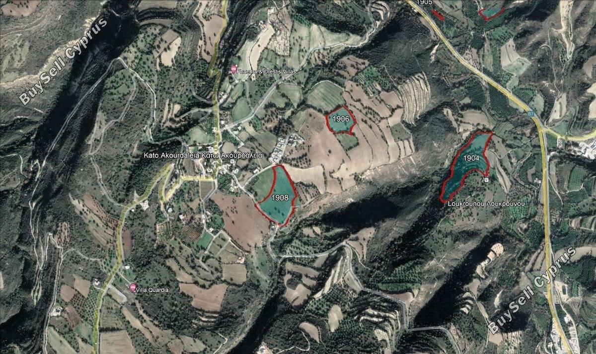 Pole to znajduje się w granicach administracyjnych wsi Kato Akurdalia, dystrykt Pafos, około 150 metrów na południowy wschód od centrum wsi. Nieruchomość ma nieregularny kształt o pochyłej powierzchni. Udział sprzedaży 2/8, nieruchomość niepodzielna. Aby uzyskać więcej informacji prosimy o kontakt. CENA MOŻE PODLEGAĆ PODATKU VAT.