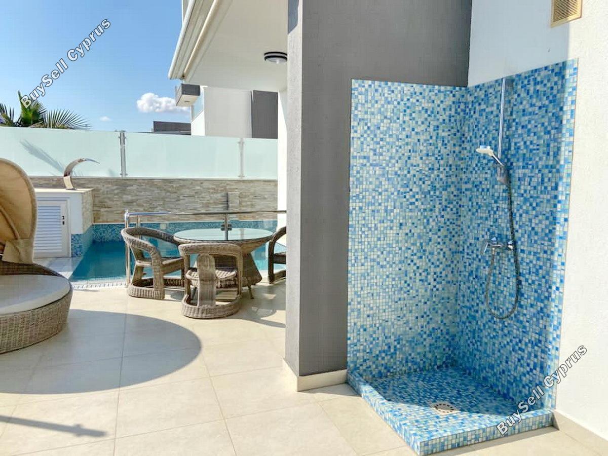Nowoczesna, przestronna, zupełnie nowa, w pełni umeblowana wolnostojąca willa z trzema sypialniami położona na wzniesieniu z pięknym ogrodem na dachu i niesamowitym widokiem na morze. Dokładniej, willa znajduje się mniej niż 1 km od Metro Supermarket i dokładnie pięć minut jazdy od najbliższej piaszczystej plaży Agia Triada (Trinity). Willa została zaprojektowana z myślą o komfortowym życiu rodzinnym. Drzwi wejściowe prowadzą do jasnej, przestronnej części dziennej i jadalnej z kominkiem i drzwiami na patio, które prowadzą na taras przy basenie z widokiem na morze. Na dużym tarasie znajduje się prywatny narożny basen z przelewem, a taras na dachu z widokiem na morze jest idealnym miejscem na uzupełnienie opalenizny. Wewnątrz jasna otwarta kuchnia, salon i jadalnia z toaletą dla gości na parterze oferują dużą przestrzeń do beztroskiego życia. Duża część kuchenna wyposażona jest w sprzęt AGD i jest również wejście z pomieszczenia garażowego. Na piętrze znajdują się trzy dwuwymiarowe sypialnie z sypialnią główną z własną łazienką, garderobą i prywatnym balkonem z widokiem na morze. Istnieje również duża luksusowa łazienka rodzinna. Wszystko, czego możesz chcieć w willi, jest zapewnione, tworząc idealny dom. Oferowana do sprzedaży nieruchomość jest w pełni umeblowana i wyposażona jak widać na ogłoszeniu. W cenę wliczony jest również SUV Porche Cayenne wyprodukowany w 2016 roku. Nowy nabywca ma możliwość kupienia wydzielonej działki mieszkalnej o powierzchni 1533 m2 (zabudowa 90%) dołączonej do tylnej części domu za dodatkową opłatą 200 000 euro. (Grunt jest pokazany na liście) Ten kawałek ziemi może być wykorzystany pod dodatkowe ogrodnictwo itp. lub jako przyszłą inwestycję pod budowę większej liczby domów.
