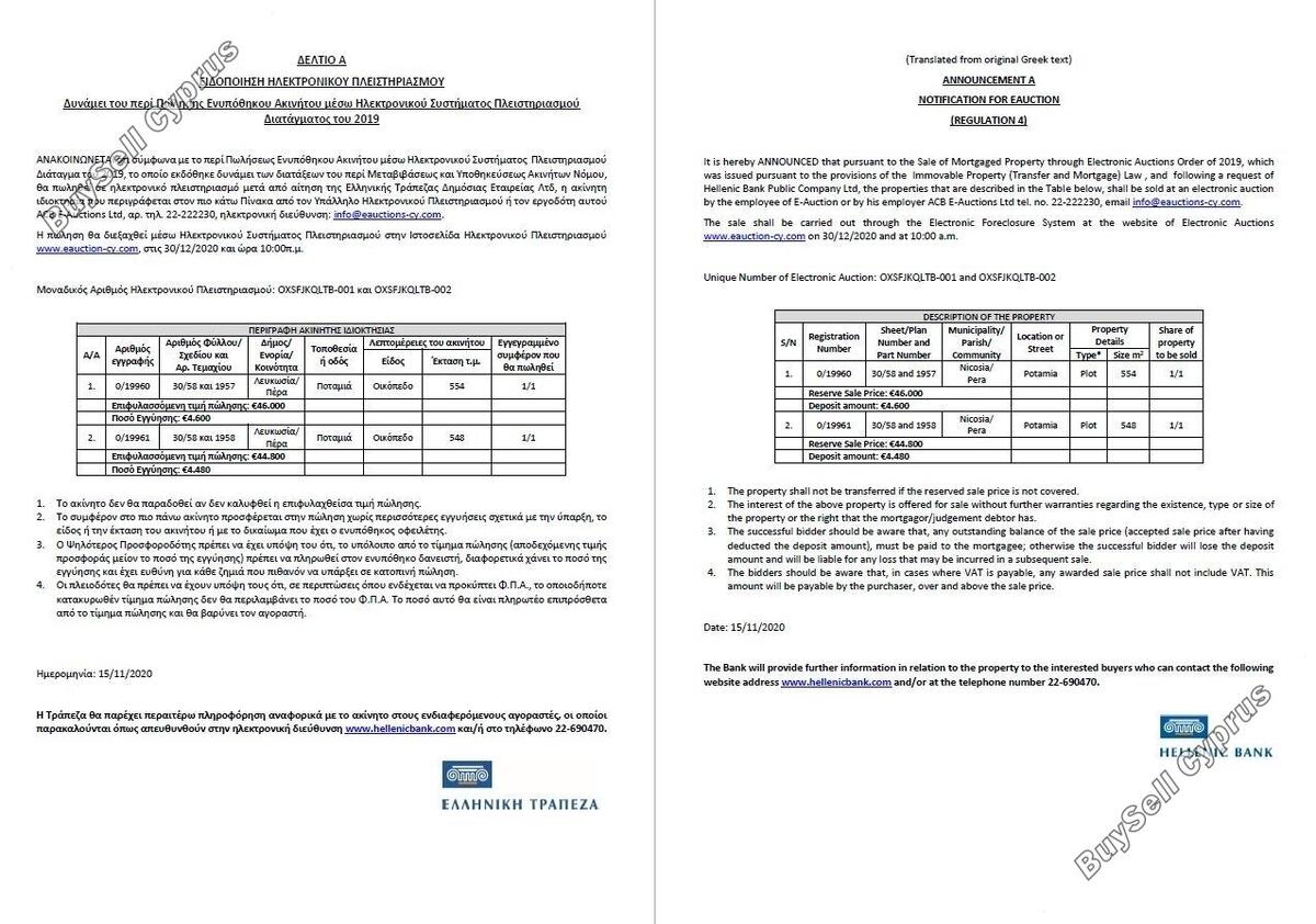 Aukcja zostanie przeprowadzona za pośrednictwem Elektronicznego Systemu Wykluczenia na stronie internetowej Aukcji Elektronicznych www.eauction-cy.com - https://www.eauction-cy.com/Auction/Details/1982 w dniu 30.12.2020 r. o godz. :00 Unikalny numer aukcji elektronicznej: OXSFJKQLTB-001. Nieruchomość objęta jest 100% udziałem. Aby uzyskać więcej informacji prosimy o kontakt (22-690470). Należy pamiętać, że podana powyżej cena jest ceną zastrzeżoną aukcji. Osoby, które będą licytować na aukcji, muszą się zarejestrować i wpłacić kaucję do godziny 15:00. dwa (2) pełne dni robocze przed datą aukcji.