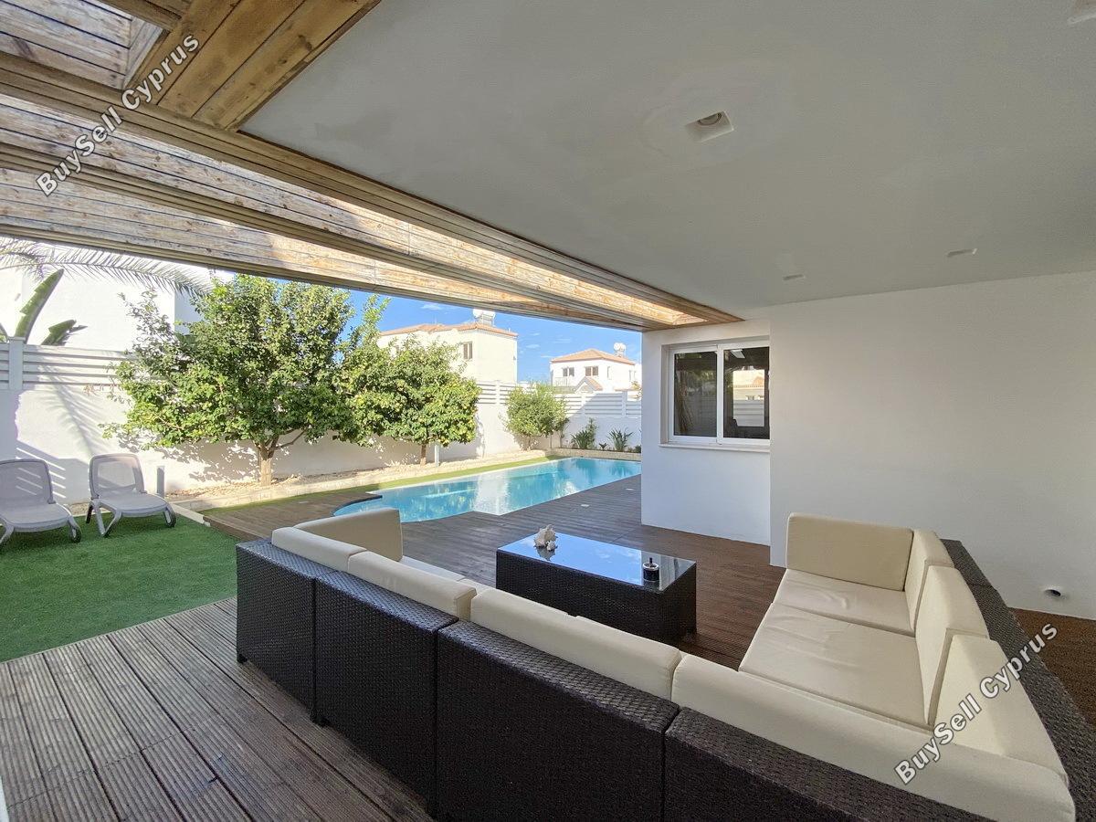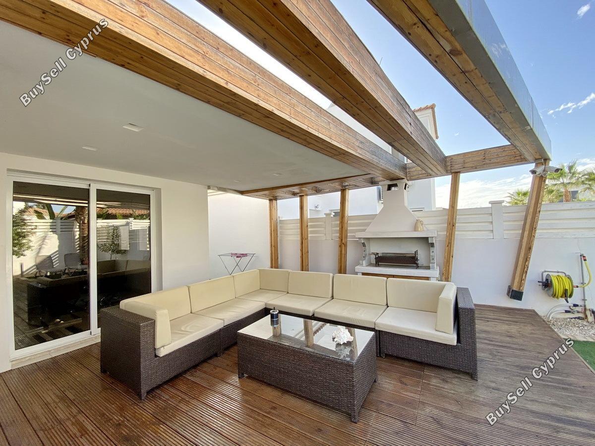 Nieskazitelny doskonały stan, ogrodzona willa z trzema sypialniami, czterema łazienkami położona w spokojnej okolicy, zaledwie kilka kroków (500 metrów spacerem) od słynnej zatoki Nissi Beach. Jego niesamowity, zupełnie nowy, prywatny basen wyłożony kafelkami z rzymskimi schodami znajduje się we wspaniałym słonecznym ogrodzie / tarasie, który jest całkowicie zamknięty - co czyni go idealnym dla rodzin z małymi dziećmi, na imprezy i dla rezydencji, które poszukują maksymalnej prywatności we własnych pomieszczeniach . Grill jest idealnym miejscem na posiłek na świeżym powietrzu na pięknym prywatnym tarasie w ogrodzie przy basenie. Zaledwie kilka minut spacerem od wspaniałego wybrzeża zatoki Nissi Beach i innych wspaniałych plaż oraz od bogactwa doskonałych restauracji, barów i sklepów, ta willa oferuje wszystko na wyciągnięcie ręki. Układ nieruchomości składa się z salonu na otwartym planie, jadalni z piękną, zupełnie nową kuchnią, ładnie wydzieloną w rogu. Cały plan parteru ma łatwy dostęp przez przesuwane drzwi do zewnętrznego basenu / ogrodu / altany. Na dole znajduje się również dwuosobowa sypialnia z własną łazienką. Jest też toaleta dla gości, duża, bardzo wygodna oddzielna przechowalnia, oddzielna sala warsztatowa oraz zadaszony parking z drzwiami elektrycznymi. Układ na piętrze składa się z dwóch dużych sypialni, z których obie mają wspaniałe łazienki. Główna sypialnia posiada własny balkon z widokiem na morze w oddali. Ta oszałamiająca nieruchomość oferuje również systemy CCTV i alarmowe oraz jest w pełni umeblowana. Widoki są bardzo polecane każdemu, kto chce kupić nieruchomość, aby żyć w spokoju, ale tylko kilka minut spacerem od słynnej plaży Nissi i wszystkich innych atrakcji turystycznych Agia Napa.