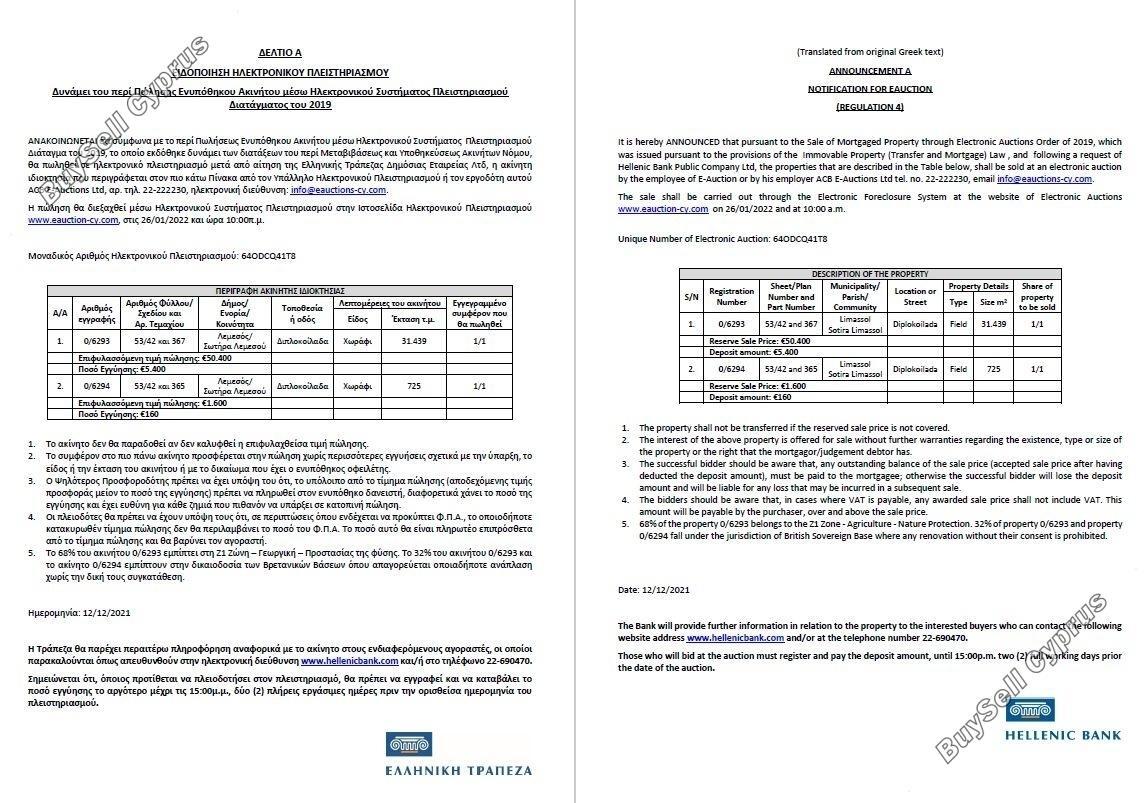 Aukcja zostanie przeprowadzona za pośrednictwem Elektronicznego Systemu Wykluczenia na stronie internetowej Aukcji Elektronicznych www.eauction-cy.com w dniu 26.01.2022 r. o godz. 10:00 Unikalny Numer Aukcji Elektronicznej: 64ODCQ41T8-002. Nieruchomość objęta jest 100% udziałem. Aby uzyskać więcej informacji prosimy o kontakt (22-690470). Należy pamiętać, że podana powyżej cena jest ceną zastrzeżoną aukcji. Osoby, które będą licytować na aukcji, muszą się zarejestrować i wpłacić kaucję do godziny 15:00. dwa (2) pełne dni robocze przed datą aukcji.
