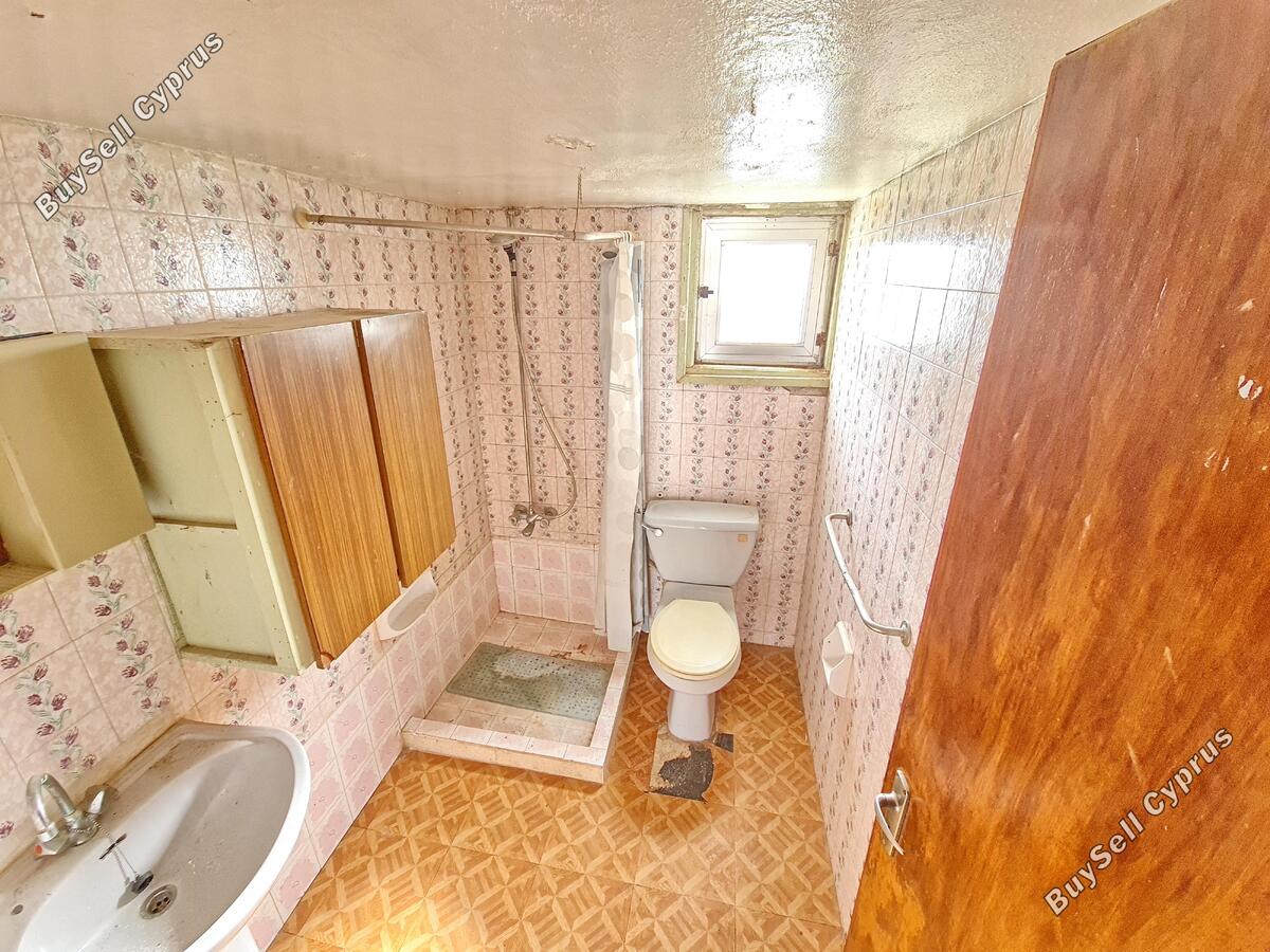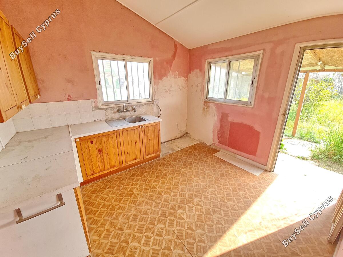 Ten stary, tradycyjny bungalow położony jest w cichej okolicy na obrzeżach miasta Derynia, w odległości spaceru od wszystkich miejskich udogodnień. Nieruchomość jest stara i wymaga remontu. Rozkład pomieszczeń składa się z oddzielnego salonu, wydzielonej kuchni z miejscem na stół jadalny, dwóch sypialni oraz rodzinnej łazienki. Dom znajduje się na dużej działce z ogródkami i zadaszoną werandą zarówno z przodu jak iz tyłu posesji. Gęstość zabudowy mieszkaniowej na działce z łatwością pozwala na rozbudowę konkretnej nieruchomości.