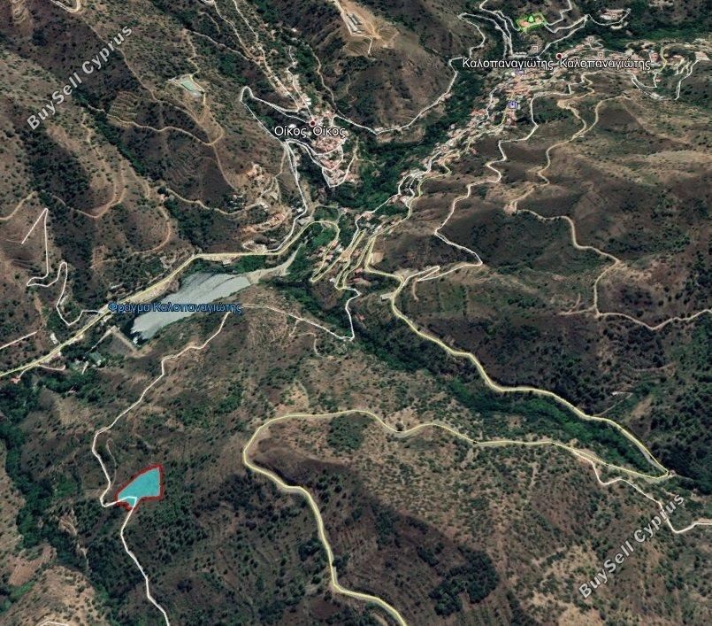 Nieruchomość położona w gminie Kalopanayiotis około 930 m na południowy zachód od zapory. Ma nieregularny kształt, stanowi część obszaru zbocza wzgórza i przylega do zarejestrowanej ścieżki o pierzei około 35 m.